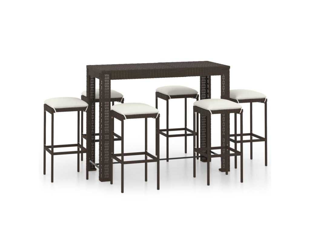 Barový stôl je opatrený oceľovým rámom s práškovanou povrchovou úpravou, vďaka čomu je stabilný a odolný. Stolová doska je ideálna na položenie nápojov, jedla alebo dekoratívnych predmetov. Stoličky majú pevnú konštrukciu z oceľového rámu a sú vyrobené z PE ratanu odolného voči poveternostným vplyvom, čo zaisťuje ich stabilitu a ľahké premiestňovanie. Vankúš a opierka nôh tiež zvyšujú pohodlie pri sedení na stoličke. Poťah vankúša z polyesteru so skrytým zipsom uľahčuje čistenie.