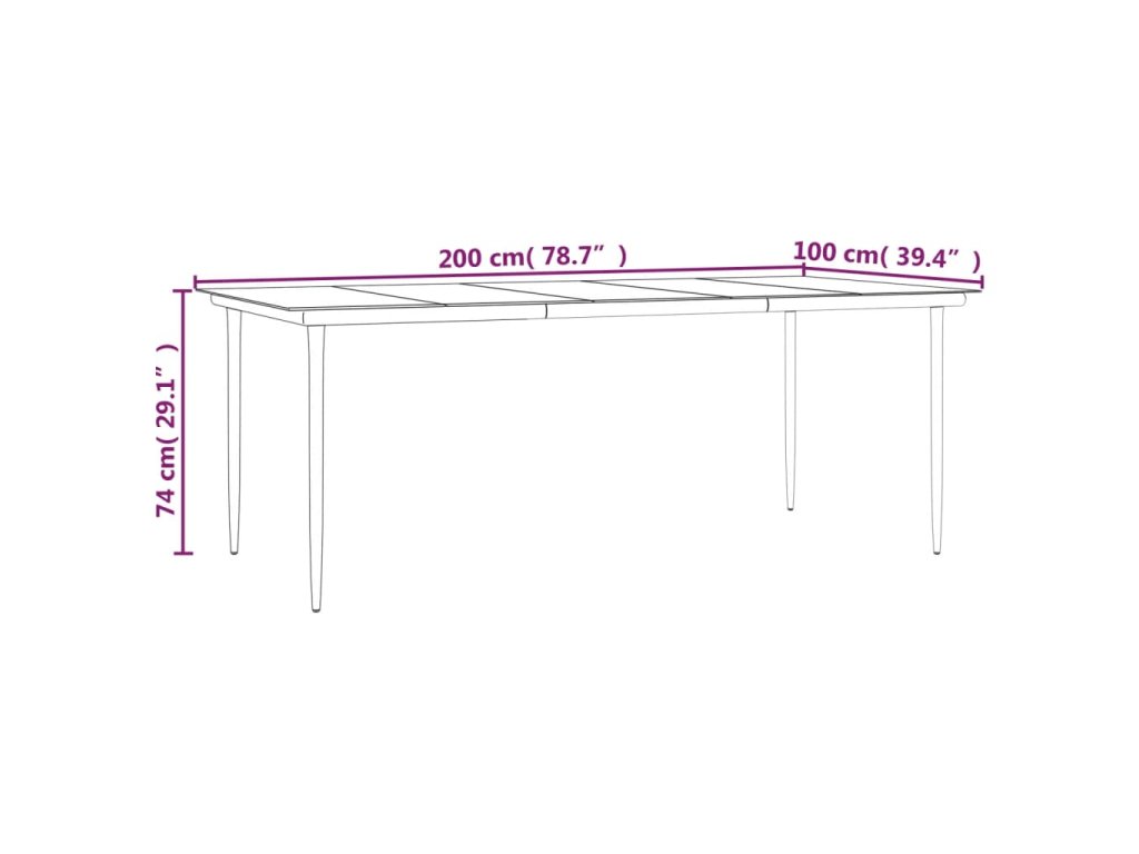 - Rozmery: 200 x 100 x 74 cm (D x Š x V)