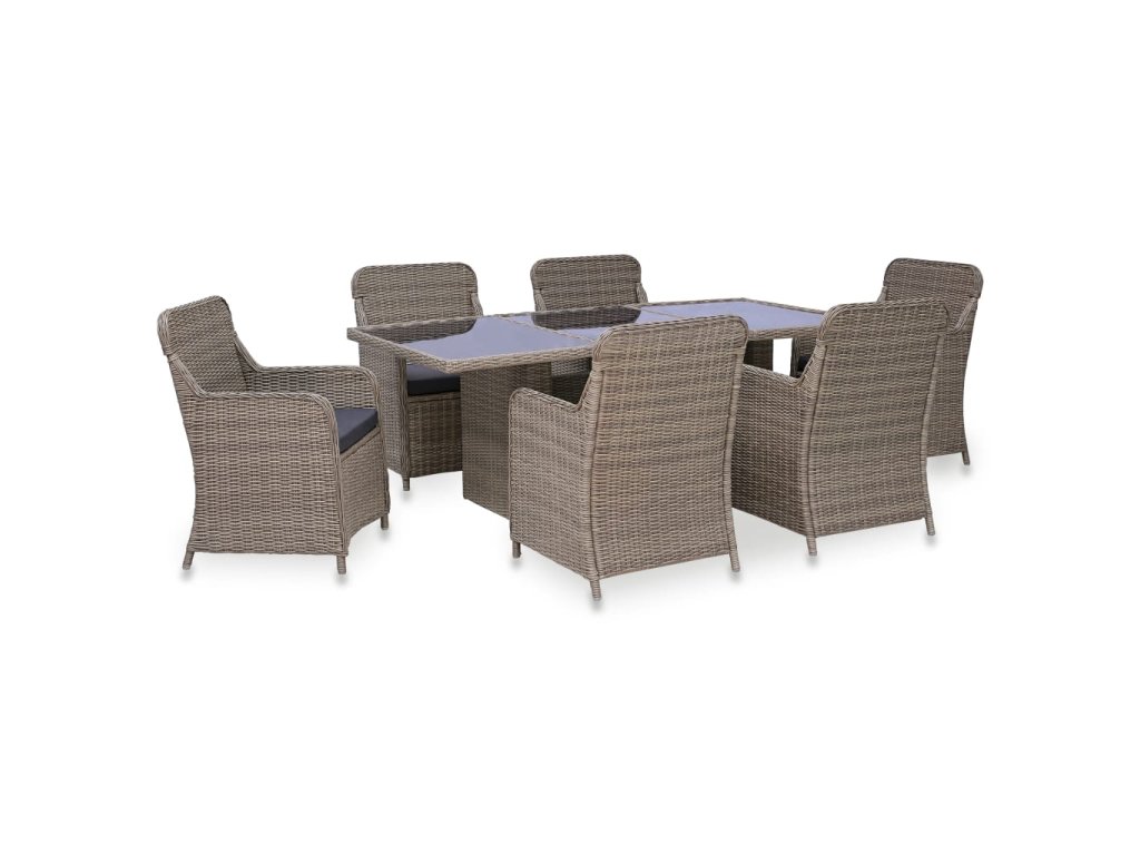 Táto luxusná okrúhla polyratanová jedálenská súprava pre 6 osôb má elegantný dizajn a bude hlavným prvkom vašej záhrady či verandy.