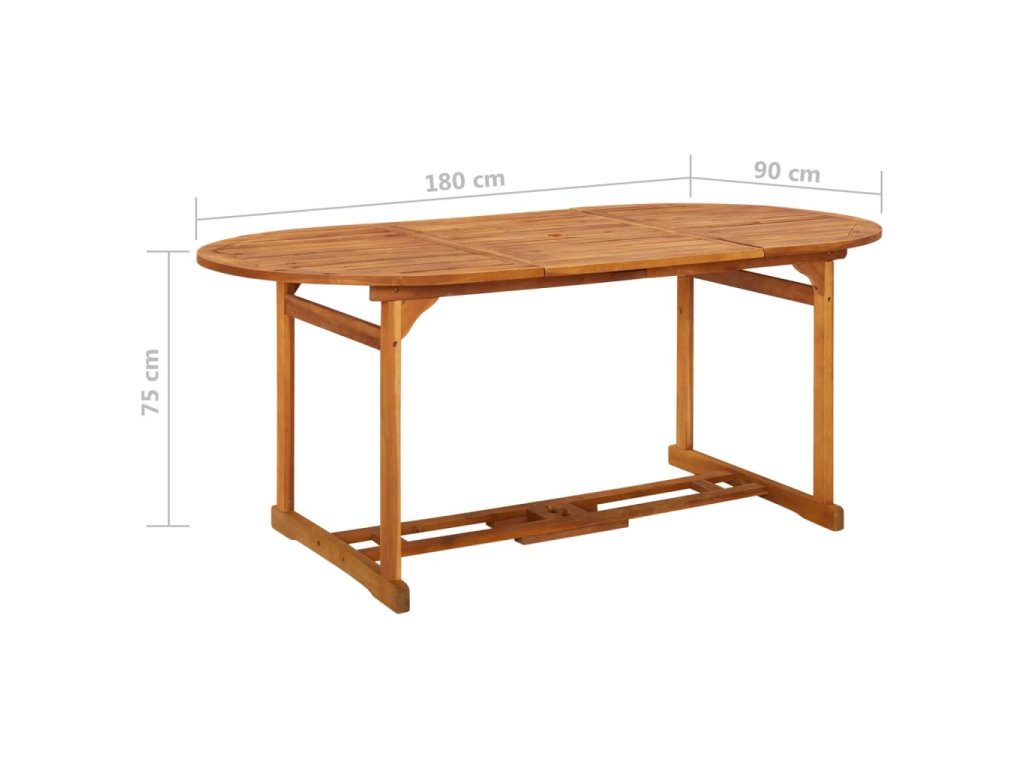 Vonkajšia jedálenská súprava je vyrobená z akáciového masívu, tropického tvrdého dreva, ktoré je trvácne a odolné voči poveternostným vplyvom, a tak vám vydrží dlhé roky. Povrch s olejovým náterom sa dá ľahko očistiť navlhčenou handričkou. Stoličky na terasu sa navyše dajú poskladať do kompaktných rozmerov, aby nezaberali veľa miesta, keď ich nepoužívate.