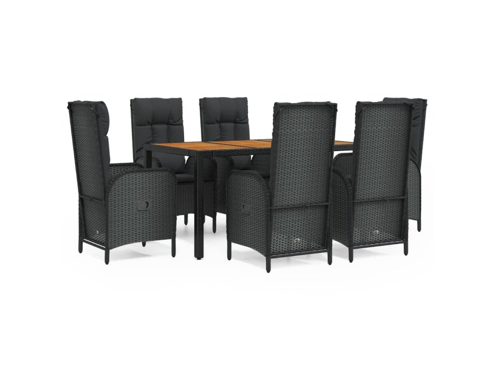 - Materiál: PE ratan, práškovaná oceľ, masívne akáciové drevo s olejovým náterom