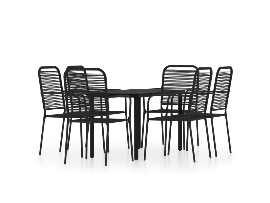 Táto záhradná jedálenská súprava má oceľový rám s práškovým nástrekom, vďaka čomu je stôl so stoličkami stabilný a odolný. Operadlo a sedadlo sú vyrobené zo spleteného bavlneného lana, ktoré je mäkké na dotyk a pevné na dlhodobé používanie. Hladká sklenená doska stola sa jednoducho čistí vlhkou handričkou a je ideálna na umiestnenie jedál, nápojov a dekoratívnych predmetov.