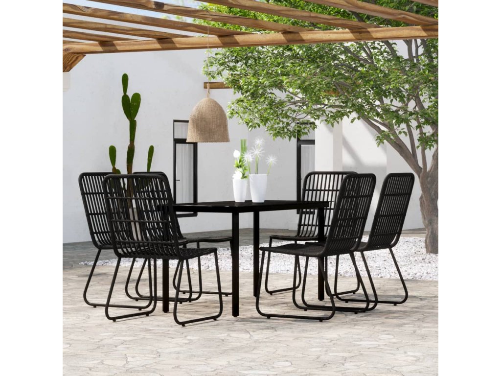Stôl a stoličky sú pevné a stabilné vďaka oceľovému rámu. Keďže súprava je tiež ľahká, všetky položky sa dajú jednoducho presúvať. Hladká sklenená doska stola sa jednoducho čistí vlhkou handričkou a je ideálna na umiestnenie jedál, nápojov a dekoratívnych predmetov. Záhradné stoličky sú vyrobené z PE ratanu, odolného voči nepriazni počasia a UV žiareniu. Zakrivené operadlá navyše zvyšujú pohodlie pri sedení na stoličkách.