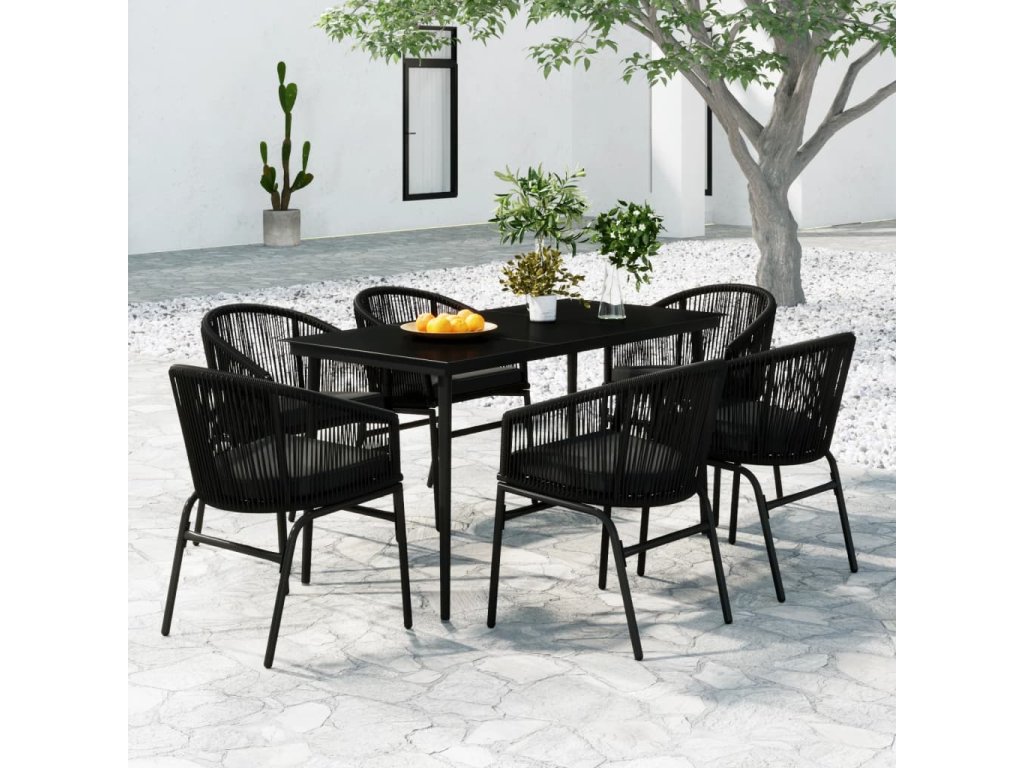 Táto záhradná jedálenská súprava je vyrobená z oceľového rámu s práškovým nástrekom, vďaka čomu je pevná a stabilná na každodenné použitie vonku. Hladká sklenená doska stola sa jednoducho čistí vlhkou handričkou a je ideálna na umiestnenie jedál, nápojov a dekoratívnych predmetov. Terasové stoličky sú vyrobené z PVC ratanu, vďaka čomu sú stabilné a odolné voči nepriazni počasia a UV žiareniu. Každé sedadlo je vybavené odnímateľným husto polstrovaným vankúšom, ktorý zvyšuje pohodlie počas sedenia.