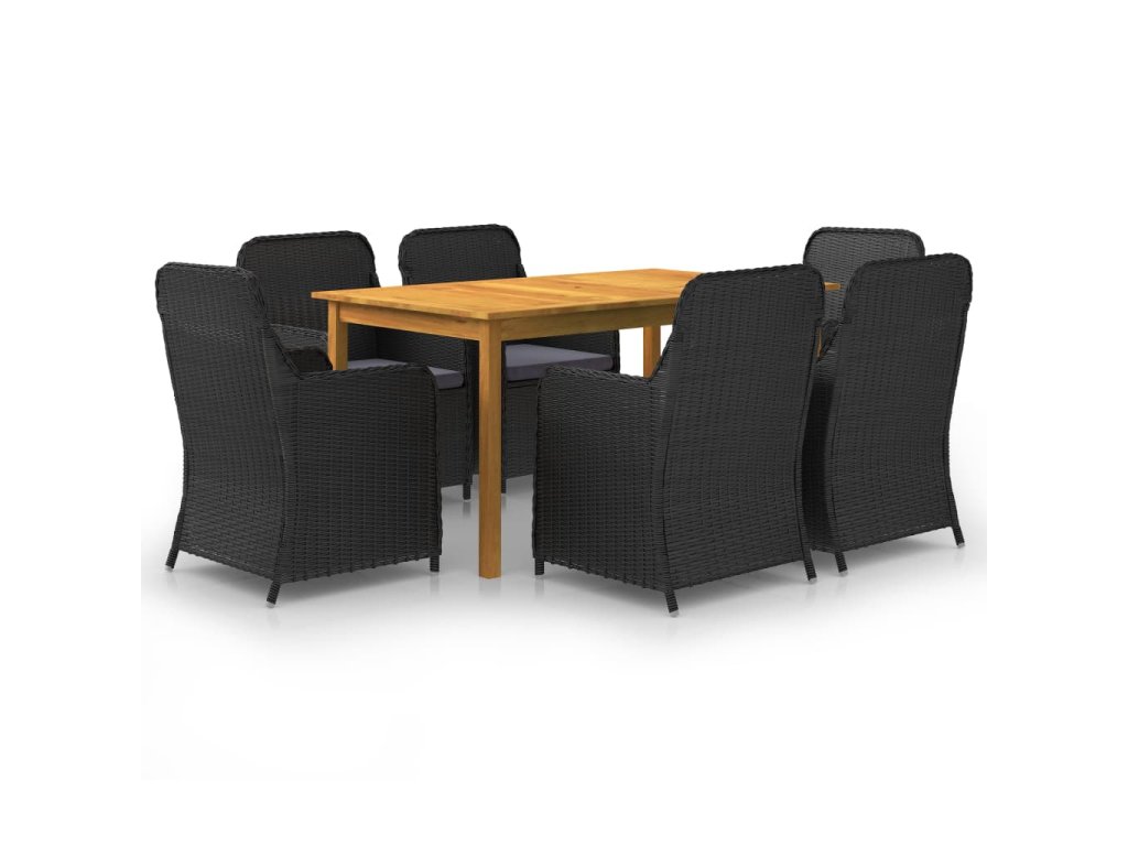 Jedálenský stôl je vyrobený z akáciového masívu s olejovým náterom, vďaka čomu je stabilný, trvácny a ľahko sa udržiava. Jedálenské stoličky majú oceľový rám s práškovou povrchovou úpravou, ktorý je pokrytý PE ratanom, vďaka čomu sú pevné a dajú sa ľahko očistiť. Ergonomický tvar s nahusto vyčalúnenými podložkami na sedadlo prinášajú optimálny komfort. Polyesterové poťahy si nevyžadujú náročnú údržbu. Stačí ich zvliecť a oprať.