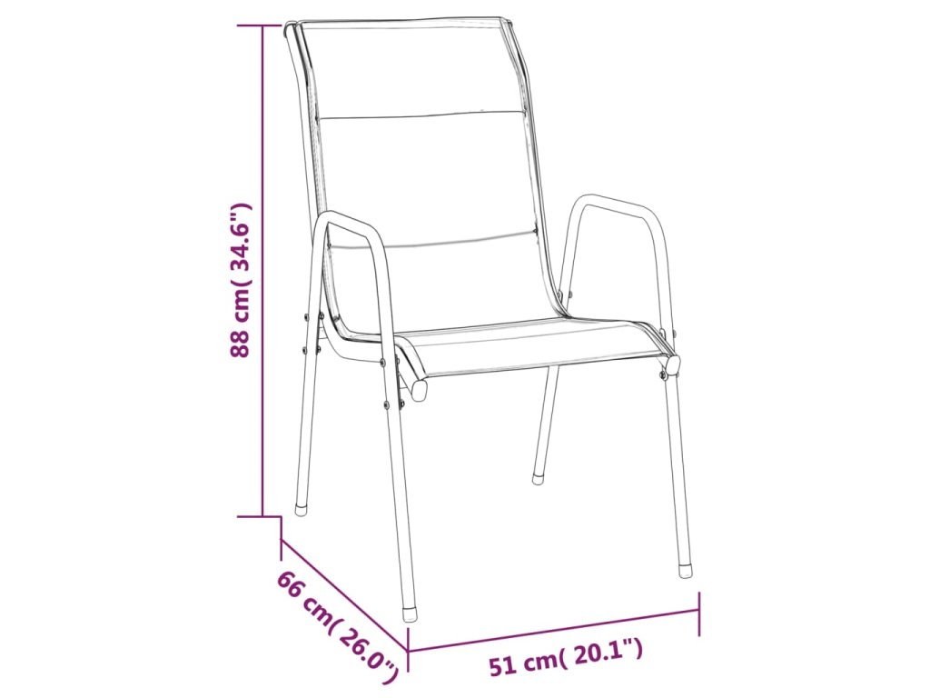 - Trvácny materiál: Vďaka pevnej textilénovej tkanine s polstrovaním sú tieto vonkajšie stoličky pohodlné, odolné voči poveternostným vplyvom a ľahko sa čistia.