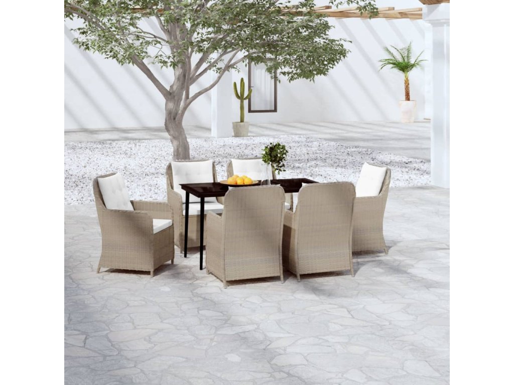 Praktická vonkajšia jedálenská súprava má oceľový rám, vďaka čomu je pevná a odolná. Záhradné stoličky sú vyrobené z vodeodolného a bezúdržbového PE ratanu, čím sú ideálne pre vonkajšie použitie. Ergonomicky tvarované a hrubo polstrované odnímateľné vankúše s penovou výplňou zaistia maximálne pohodlie počas sedenia. Polyesterové poťahy na sedáky a vankúše sú nenáročné na údržbu. Jednoducho sa dajú dať dole a vyprať. Hladká sklenená doska stola sa navyše ľahko čistí vlhkou handričkou a je vynikajúca na umiestnenie jedál, nápojov a iných dekoratívnych predmetov.