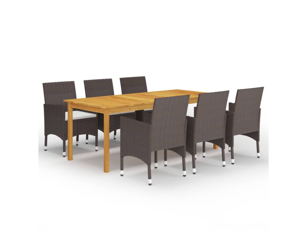 Jedálenský stôl je vyrobený z masívneho akáciového dreva s olejovou povrchovou úpravou, vďaka čomu je stabilný, odolný a ľahko sa udržiava. Vďaka práškovanému oceľovému rámu, ktorý je pokrytý vodeodolným PE ratanom sú tieto jedálenské stoličky pevné a ľahko sa čistia. Jedálenská stolička má zaoblené operadlo a lakťovú opierku, a má ergonomickejší tvar pre maximálne pohodlie. Každé sedadlo je vybavené odnímateľným husto polstrovaným vankúšom, ktorý zvyšuje pohodlie počas sedenia.