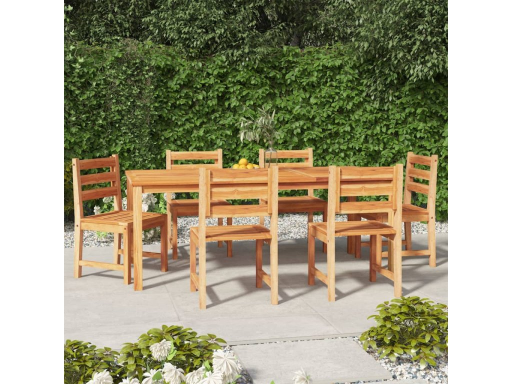 - Masívne tíkové drevo: Masívne tíkové drevo je krásny prírodný materiál. Bolo vyzreté, umelo vysušené a jemne obrúsené, čo mu dalo veľmi hladký vzhľad. Teakové drevo je známe svojou výnimočnou pevnosťou a odolnosťou voči poveternostným vplyvom.