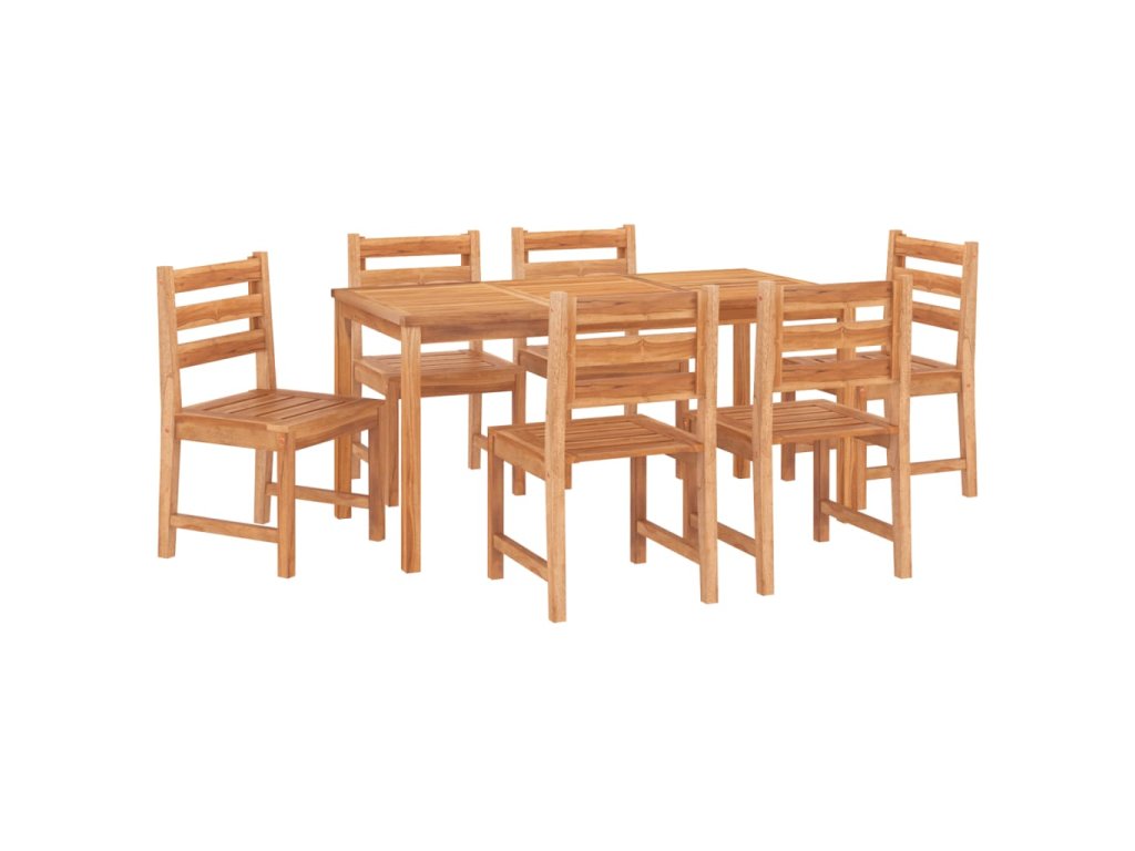 - Masívne tíkové drevo: Masívne tíkové drevo je krásny prírodný materiál. Bolo vyzreté, umelo vysušené a jemne obrúsené, čo mu dalo veľmi hladký vzhľad. Teakové drevo je známe svojou výnimočnou pevnosťou a odolnosťou voči poveternostným vplyvom.