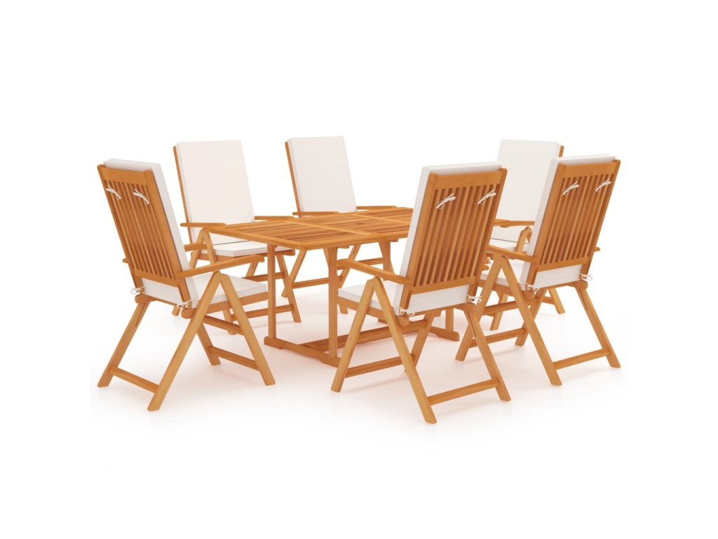 Súprava má krásnu povrchovú úpravu, ktorá dodáva drevu teplú farbu. Stôl má otvor na slnečník, čím poskytuje ochranu pred slnkom. Operadlá stoličiek sú nastaviteľné do 5 polôh, aby ste si vždy našli tú najpohodlnejšiu pozíciu. Vďaka sklopnému dizajnu sa dajú stoličky sklopiť, aby sa ušetrilo miesto, keď sa nepoužívajú. Sú tiež ľahké a ľahko sa presúvajú. Hrubé čalúnené vankúše poskytujú maximálne pohodlie a poťahy na vankúše sú odnímateľné pre ľahké pranie. Sada nábytku vám poskytuje pohodlie a príjemný čas strávený so svojou rodinou a priateľmi. Okrem toho sa táto sada ľahko čistí vlhkou handričkou.