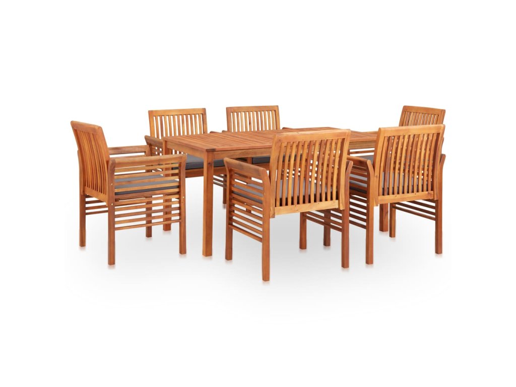 Doprajte svojej terase alebo dvoru krásny prírodný vzhľad pomocou našej jednoduchej, ale elegantnej 7-dielnej jedálenskej súpravy. Budete si môcť vychutnať chutné jedlo vonku s členmi rodiny alebo priateľmi!