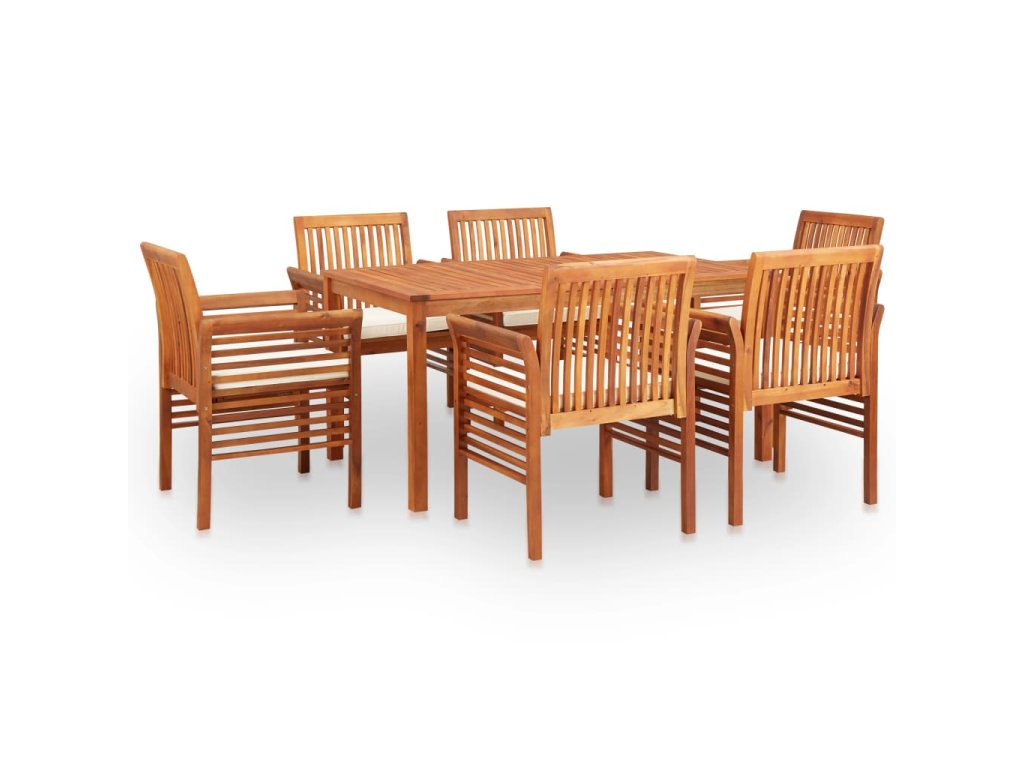 Doprajte svojej terase alebo dvoru krásny prírodný vzhľad pomocou našej jednoduchej, ale elegantnej 7-dielnej jedálenskej súpravy. Budete si môcť vychutnať chutné jedlo vonku s členmi rodiny alebo priateľmi!