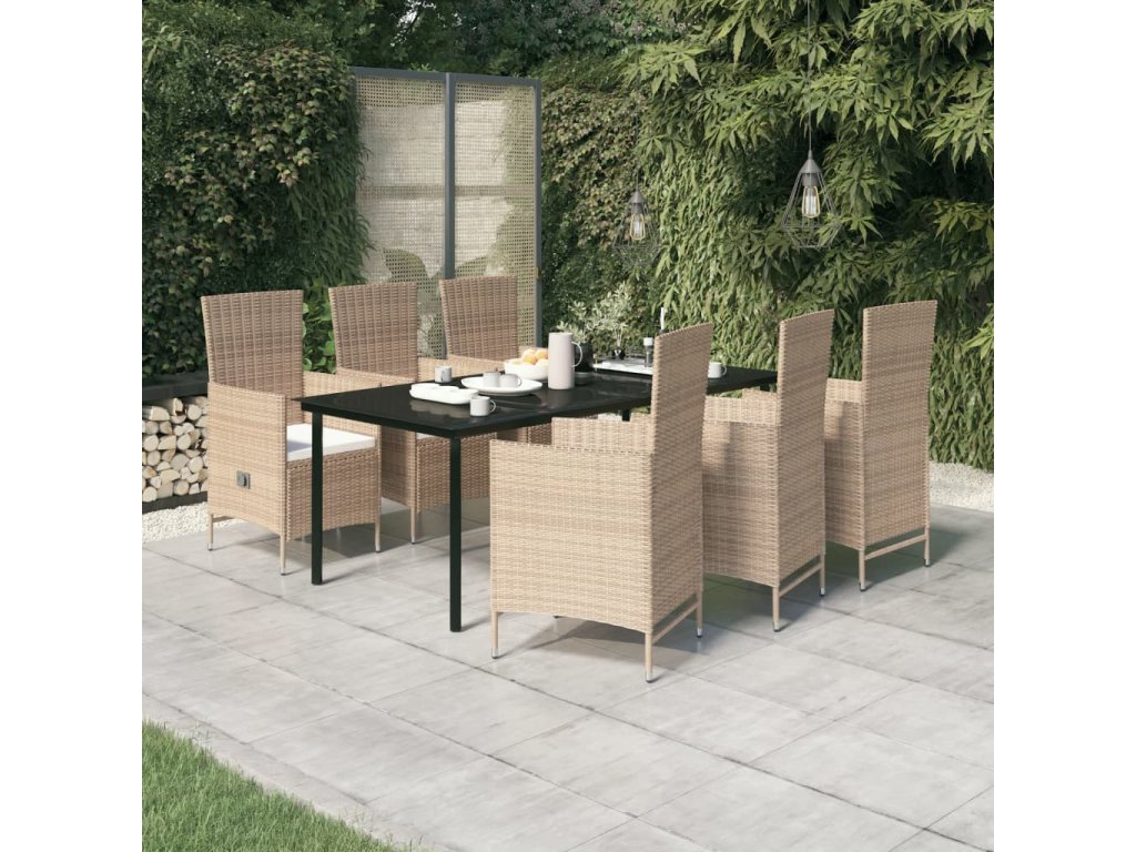 Stôl a stoličky sú pevné a stabilné vďaka oceľovým rámom s práškovým nástrekom, čím sú vhodné pre každodenné vonkajšie používanie. Vďaka vodeodolnému PE ratanu sa stoličky ľahko čistia a sú vhodné na každodenné používanie. Operadlo sa sklápa potiahnutím tlačidla na boku. Vďaka ľahkej konštrukcii sa stoličky ľahko premiestňujú. Hrubo čalúnené sedáky tiež zvyšujú pohodlie. Polyesterové poťahy nenáročné na údržbu je možné zvliecť a vyprať. Hladká sklenená doska stola sa jednoducho čistí vlhkou handričkou a je ideálna na umiestnenie jedál, nápojov a dekoratívnych predmetov.