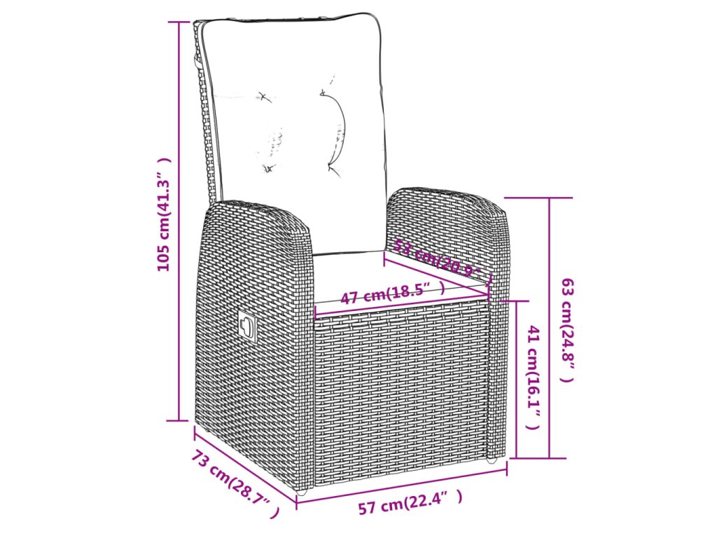 - Rozmery kresla (nesklopené): 57 x 73 x 105 cm (Š x H x V)
