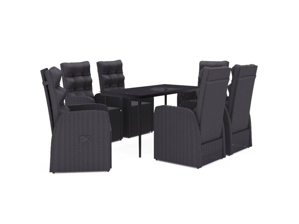 Stôl a stoličky sú pevné a stabilné vďaka oceľovým rámom s práškovým nástrekom, čím sú vhodné pre každodenné vonkajšie používanie. Vďaka vodeodolnému PE ratanu sa stoličky ľahko čistia a sú vhodné na každodenné používanie. Opierku chrbta a nôh je možné nastaviť potiahnutím tlačidla na boku. Vďaka ľahkej konštrukcii sa stoličky ľahko premiestňujú. Hrubo čalúnené sedáky tiež zvyšujú pohodlie. Polyesterové poťahy nenáročné na údržbu je možné zvliecť a vyprať. Hladká sklenená doska stola sa jednoducho čistí vlhkou handričkou a je ideálna na umiestnenie jedál, nápojov a dekoratívnych predmetov.