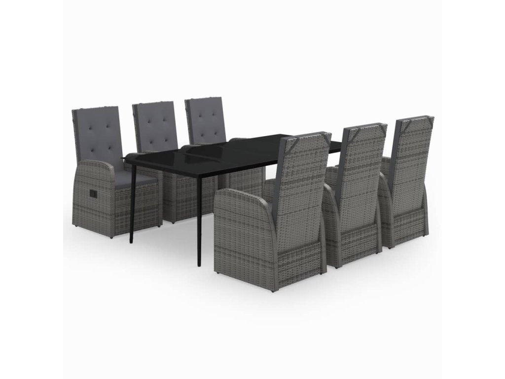 Stôl a stoličky sú pevné a stabilné vďaka oceľovým rámom s práškovým nástrekom, čím sú vhodné pre každodenné vonkajšie používanie. Vďaka vodeodolnému PE ratanu sa stoličky ľahko čistia a sú vhodné na každodenné používanie. Operadlo sa sklápa potiahnutím tlačidla na boku. Vďaka ľahkej konštrukcii sa stoličky ľahko premiestňujú. Hrubo čalúnené sedáky tiež zvyšujú pohodlie. Polyesterové poťahy nenáročné na údržbu je možné zvliecť a vyprať. Hladká sklenená doska stola sa jednoducho čistí vlhkou handričkou a je ideálna na umiestnenie jedál, nápojov a dekoratívnych predmetov.