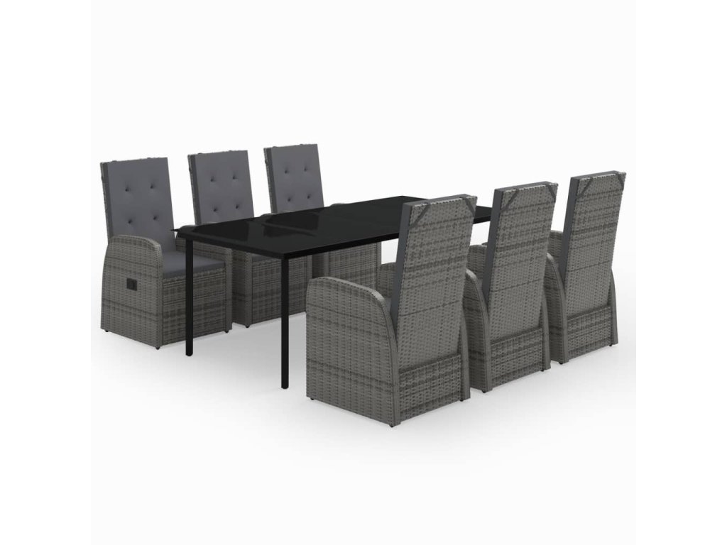 Stôl a stoličky sú pevné a stabilné vďaka oceľovým rámom s práškovým nástrekom, čím sú vhodné pre každodenné vonkajšie používanie. Vďaka vodeodolnému PE ratanu sa stoličky ľahko čistia a sú vhodné na každodenné používanie. Operadlo sa sklápa potiahnutím tlačidla na boku. Vďaka ľahkej konštrukcii sa stoličky ľahko premiestňujú. Hrubo čalúnené sedáky tiež zvyšujú pohodlie. Polyesterové poťahy nenáročné na údržbu je možné zvliecť a vyprať. Hladká sklenená doska stola sa jednoducho čistí vlhkou handričkou a je ideálna na umiestnenie jedál, nápojov a dekoratívnych predmetov.
