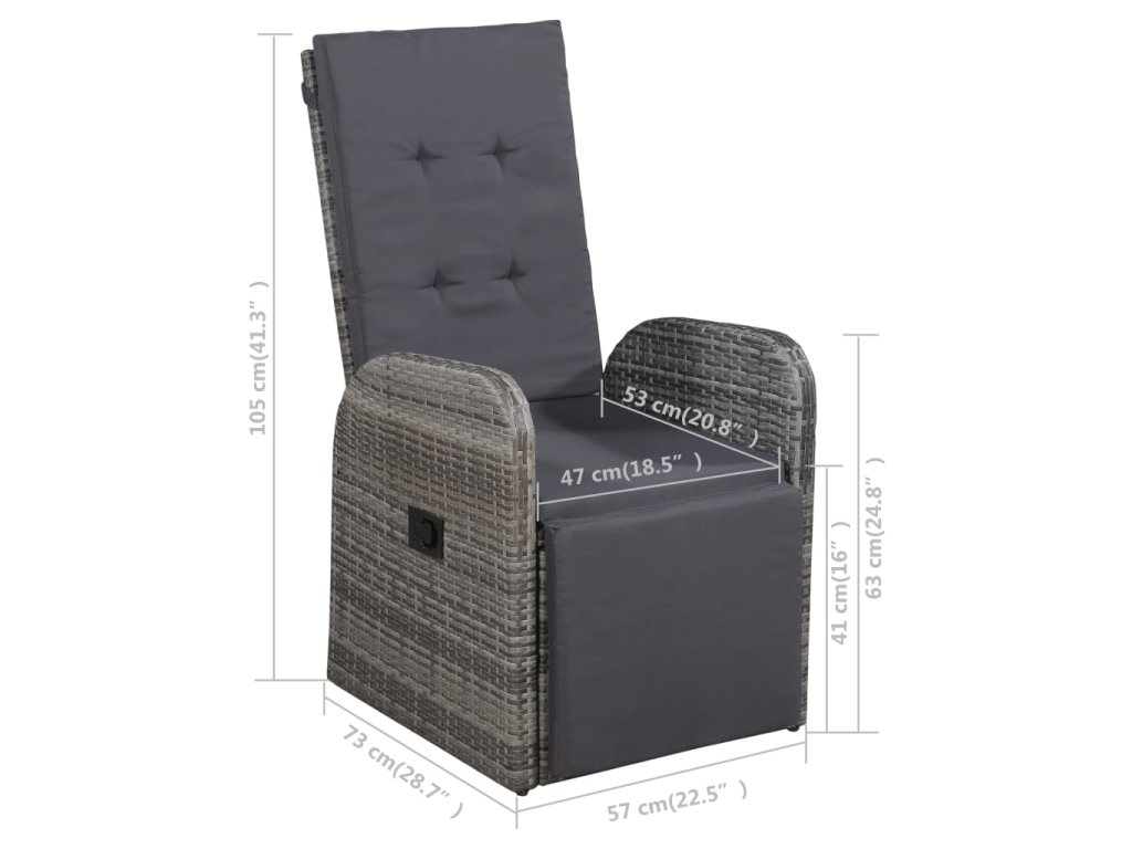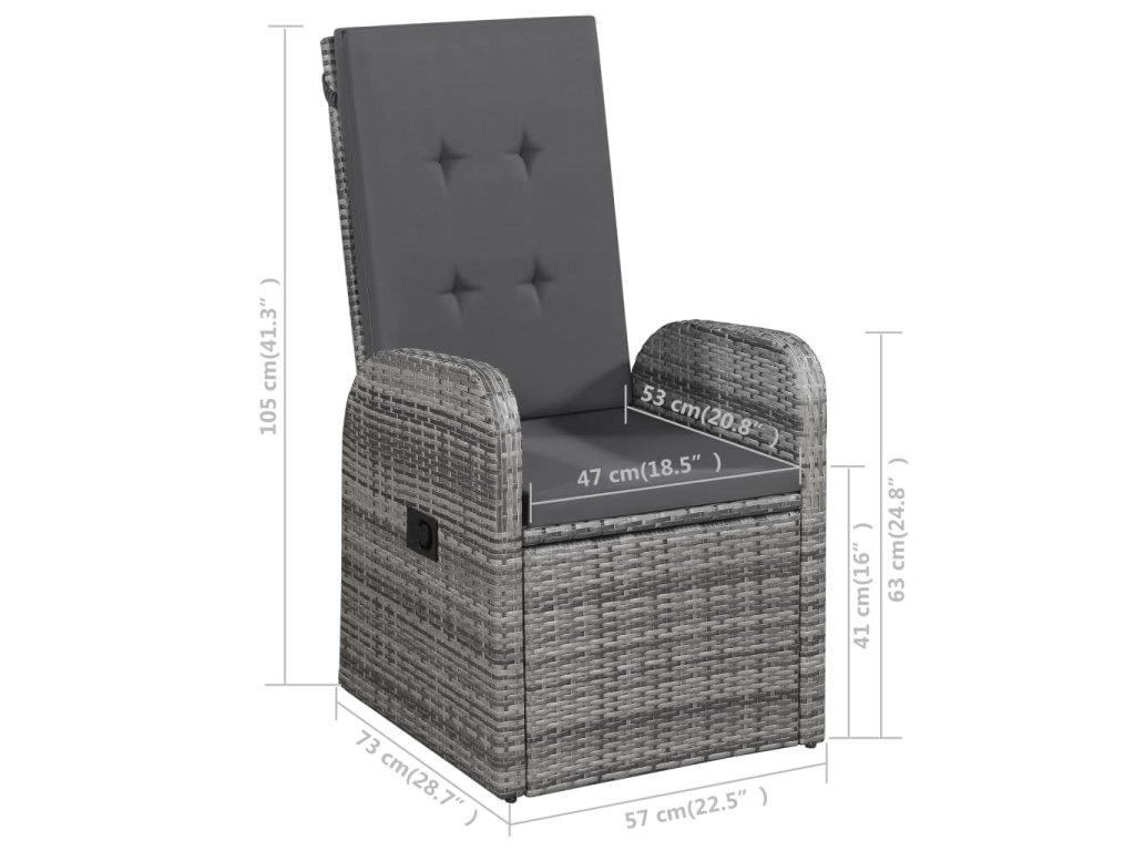 Jedálenský stôl je vyrobený z akáciového masívu s olejovým náterom, vďaka čomu je stabilný, trvácny a ľahko sa udržiava. Jedálenské stoličky majú oceľový rám s práškovou povrchovou úpravou, ktorý je pokrytý PE ratanom, vďaka čomu sú pevné a dajú sa ľahko očistiť. Stačí zatlačiť tlačidlo v bočnej časti a operadlo s podnožkou sa sklopí, takže môžete plne relaxovať. Stoličky majú ľahkú konštrukciu, a tak sa dajú jednoducho premiestňovať. Dodávajú sa spolu s veľmi pohodlnými, nahusto vyčalúnenými podložkami na sedadlo, ktoré prinášajú optimálny komfort. Polyesterové poťahy si nevyžadujú náročnú údržbu a stačí ich zvliecť a oprať.