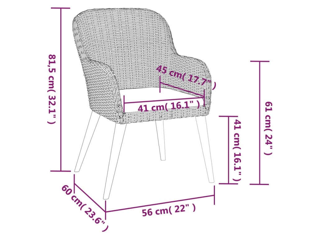 - Materiál: Polyratan, oceľový rám s práškovou povrchovou úpravou, akáciový masív s olejovým náterom