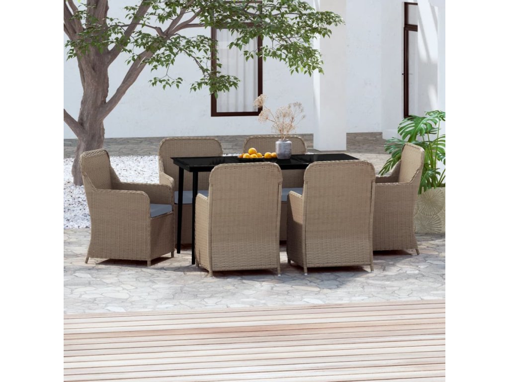 Stôl a stoličky sú pevné a stabilné vďaka oceľovým rámom s práškovým nástrekom, čím sú vhodné pre každodenné vonkajšie používanie. Vďaka vodeodolnému PE ratanu sa stoličky ľahko čistia a sú vhodné na každodenné používanie. Ergonomicky navrhnutý tvar a hrubo polstrované, odnímateľné vankúše s penovou výplňou poskytujú maximálny komfort počas sedenia. Polyesterové poťahy na vankúše, ktoré sú nenáročné na údržbu, sa dajú ľahko sňať a vyprať. Hladká sklenená doska stola sa jednoducho čistí vlhkou handričkou a je ideálna na umiestnenie jedál, nápojov a dekoratívnych predmetov.