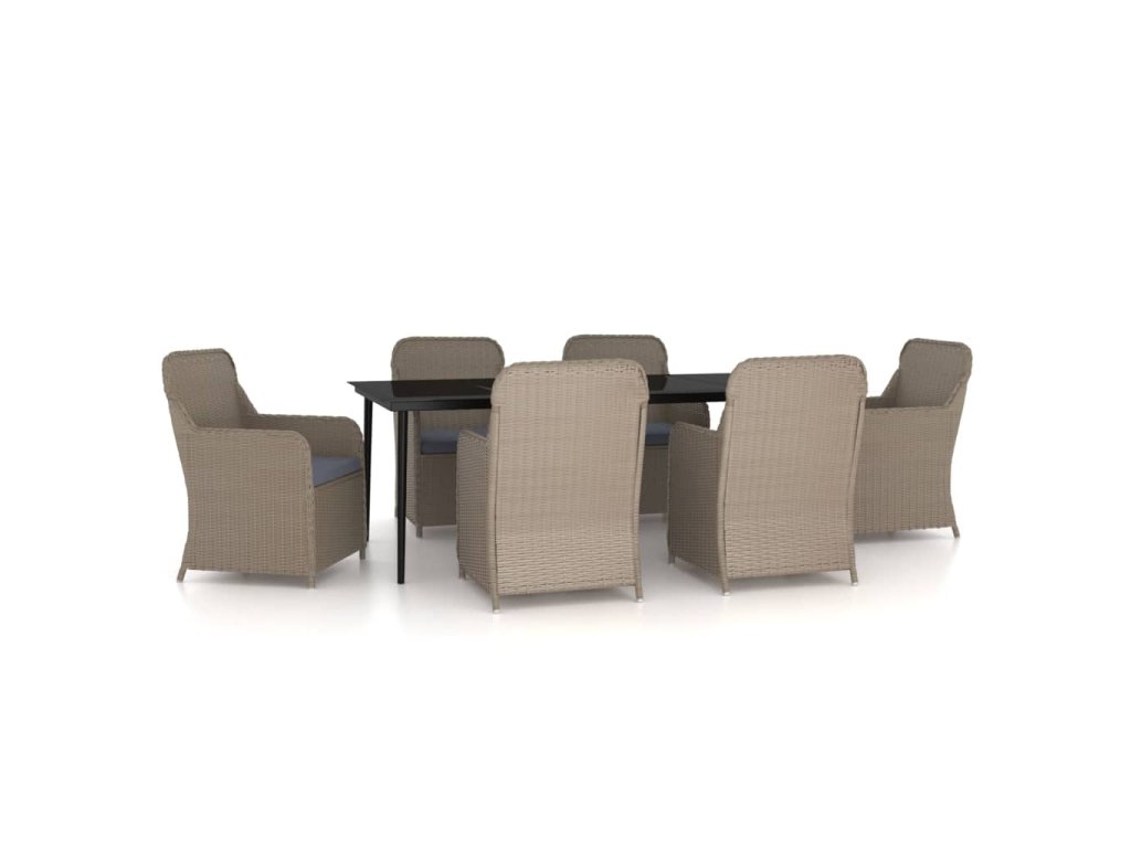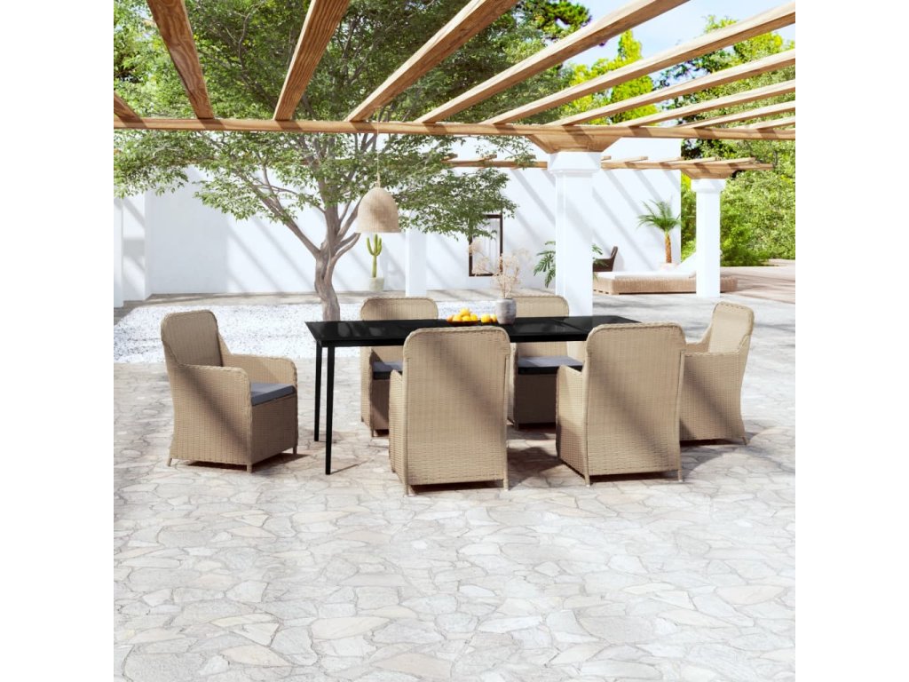 Stôl a stoličky sú pevné a stabilné vďaka oceľovým rámom s práškovým nástrekom, čím sú vhodné pre každodenné vonkajšie používanie. Vďaka vodeodolnému PE ratanu sa stoličky ľahko čistia a sú vhodné na každodenné používanie. Ergonomicky navrhnutý tvar a hrubo polstrované, odnímateľné vankúše s penovou výplňou poskytujú maximálny komfort počas sedenia. Polyesterové poťahy na vankúše, ktoré sú nenáročné na údržbu, sa dajú ľahko sňať a vyprať. Hladká sklenená doska stola sa jednoducho čistí vlhkou handričkou a je ideálna na umiestnenie jedál, nápojov a dekoratívnych predmetov.