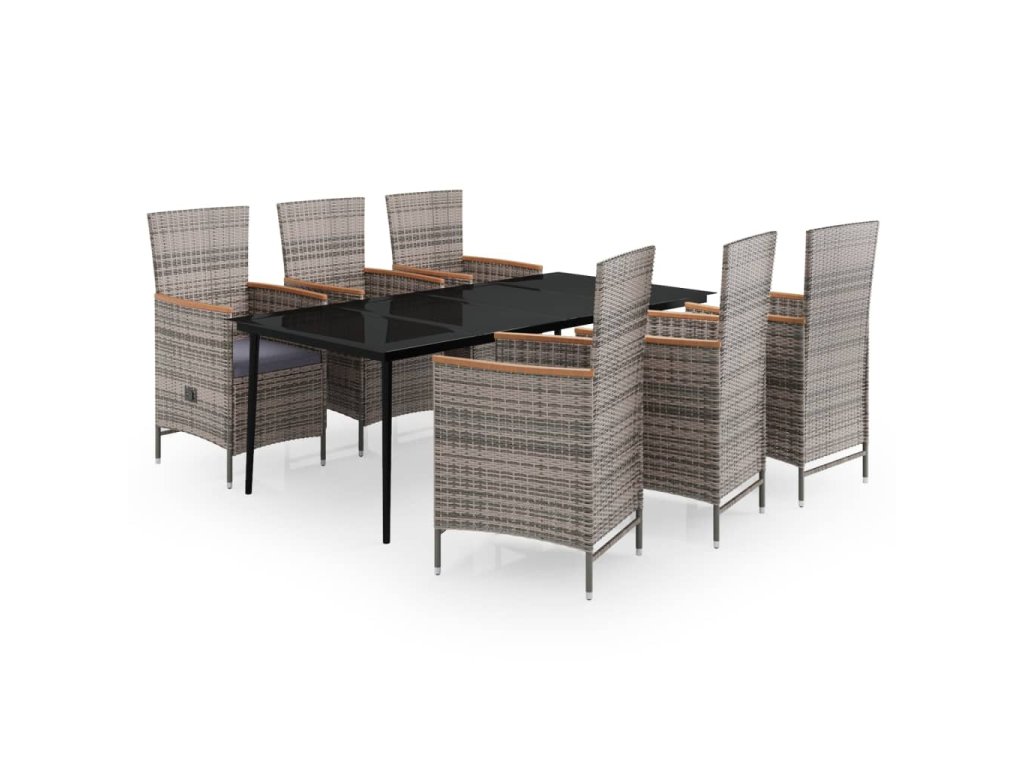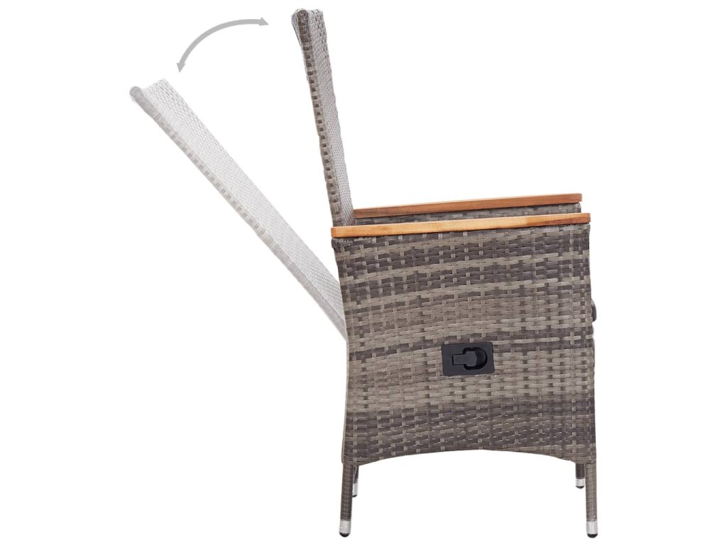 Stôl a stoličky sú pevné a stabilné vďaka oceľovým rámom s práškovým nástrekom, čím sú vhodné pre každodenné vonkajšie používanie. Vďaka vodeodolnému PE ratanu sa stoličky ľahko čistia a sú vhodné na každodenné používanie. Operadlo sa sklápa potiahnutím tlačidla na boku. Vďaka ľahkej konštrukcii sa stoličky ľahko premiestňujú. Hrubo čalúnené sedáky tiež zvyšujú pohodlie. Polyesterové poťahy nenáročné na údržbu je možné zvliecť a vyprať. Hladká sklenená doska stola sa jednoducho čistí vlhkou handričkou a je ideálna na umiestnenie jedál, nápojov a dekoratívnych predmetov.
