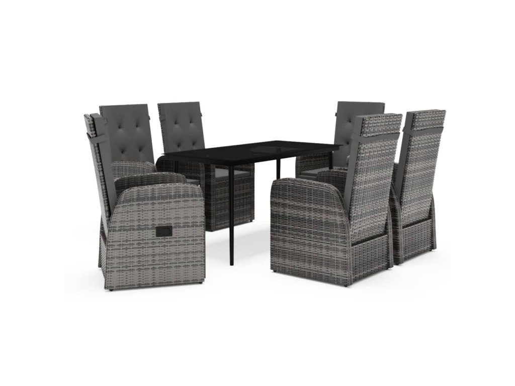 Oceľové rámy s práškovým nástrekom zaisťujú, že sú stôl a stoličky pevné a stabilné, aby boli vhodné na každodenné vonkajšie používanie. Vďaka vodeodolnému PE ratanu sa stoličky ľahko čistia a sú odolné. Opierku chrbta a nôh je možné nastaviť pomocou gombíka na boku stoličky. Vďaka ľahkej konštrukcii sa súprava ľahko presúva. Stoličky majú husto polstrované sedáky, ktoré poskytnú extra pohodlie pri sedení. Polyesterové poťahy na sedákoch sú nenáročné na údržbu, lebo sa dajú jednoducho odstrániť a vyprať. Hladká sklenená doska stola sa ľahko čistí vlhkou handričkou a je ideálna na umiestnenie jedál, nápojov a iných dekoratívnych predmetov.