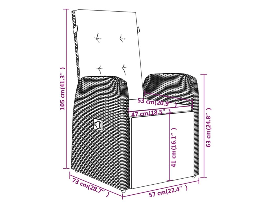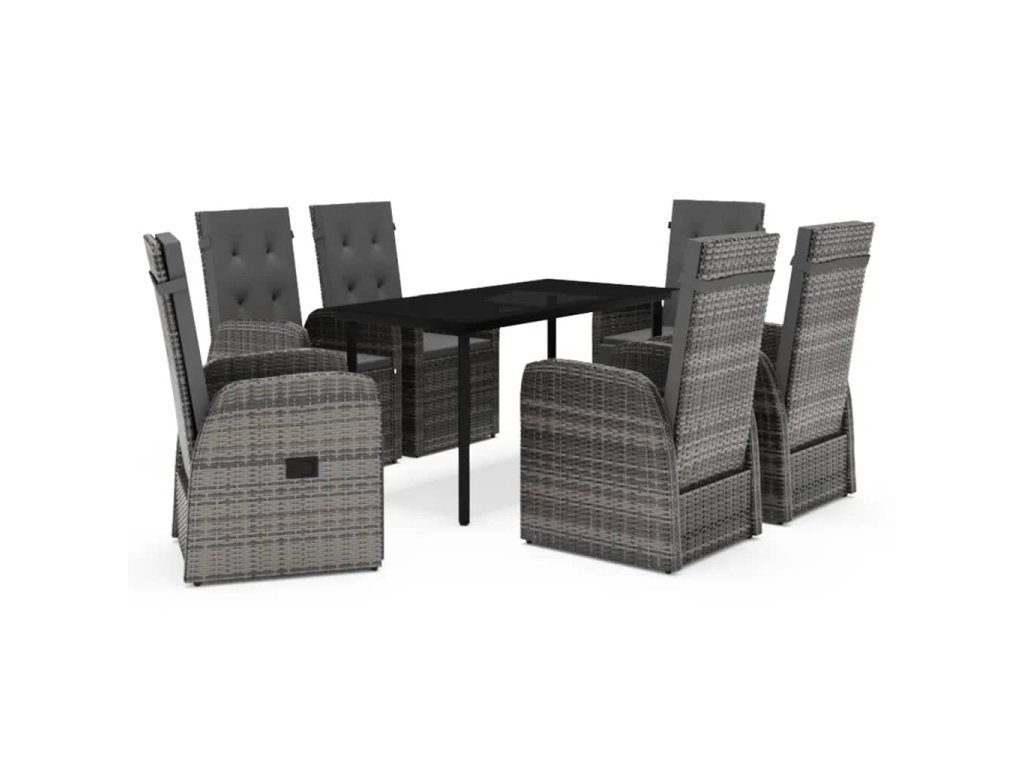 Oceľové rámy s práškovým nástrekom zaisťujú, že sú stôl a stoličky pevné a stabilné, aby boli vhodné na každodenné vonkajšie používanie. Vďaka vodeodolnému PE ratanu sa stoličky ľahko čistia a sú odolné. Opierku chrbta a nôh je možné nastaviť pomocou gombíka na boku stoličky. Vďaka ľahkej konštrukcii sa súprava ľahko presúva. Stoličky majú husto polstrované sedáky, ktoré poskytnú extra pohodlie pri sedení. Polyesterové poťahy na sedákoch sú nenáročné na údržbu, lebo sa dajú jednoducho odstrániť a vyprať. Hladká sklenená doska stola sa ľahko čistí vlhkou handričkou a je ideálna na umiestnenie jedál, nápojov a iných dekoratívnych predmetov.