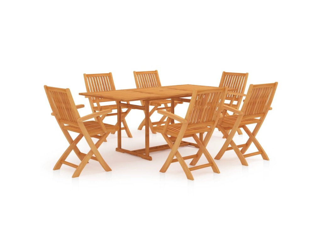 Súprava má krásnu povrchovú úpravu, ktorá dodáva drevu teplú farbu. Stôl má otvor na slnečník, takže poskytne aj ochranu pred slnkom. Zakrivené sedadlá a operadlá stoličiek poskytnú vášmu telu vhodnú oporu. Vďaka sklopnému dizajnu sa dajú stoličky sklopiť, aby sa ušetrilo miesto, keď sa nepoužívajú. Sú tiež ľahké a ľahko sa presúvajú. Sada nábytku vám poskytuje pohodlie a príjemný čas strávený so svojou rodinou a priateľmi. Okrem toho sa táto sada ľahko čistí vlhkou handričkou.