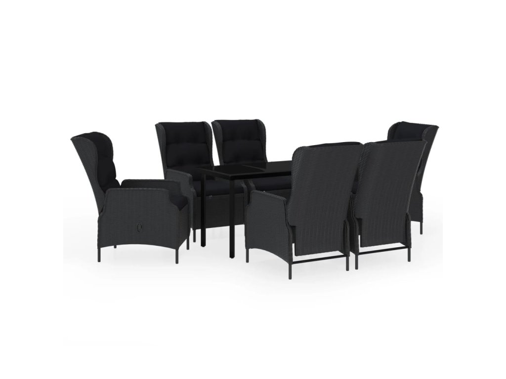 Praktická vonkajšia jedálenská súprava má oceľový rám, vďaka čomu je pevná a odolná. Záhradné polohovacie kreslá sú vyrobené z vodeodolného a bezúdržbového PE ratanu, čím sú ideálne na vonkajšie použitie. Hrubo čalúnené vankúše poskytnú extra pohodlie pri stolovaní. Poťah na vankúš má zips a dá sa oprať. Vďaka plynovému zdvíhaciemu mechanizmu je operadlo stoličky nastaviteľné, aby vyhovovalo vašej polohe. Dotykom tlačidla na boku sa dá operadlo sklopiť do pohodlnej polohy. Hladká sklenená doska stola sa ľahko čistí vlhkou handričkou a je vynikajúca na umiestnenie jedál, nápojov a iných dekoratívnych predmetov.