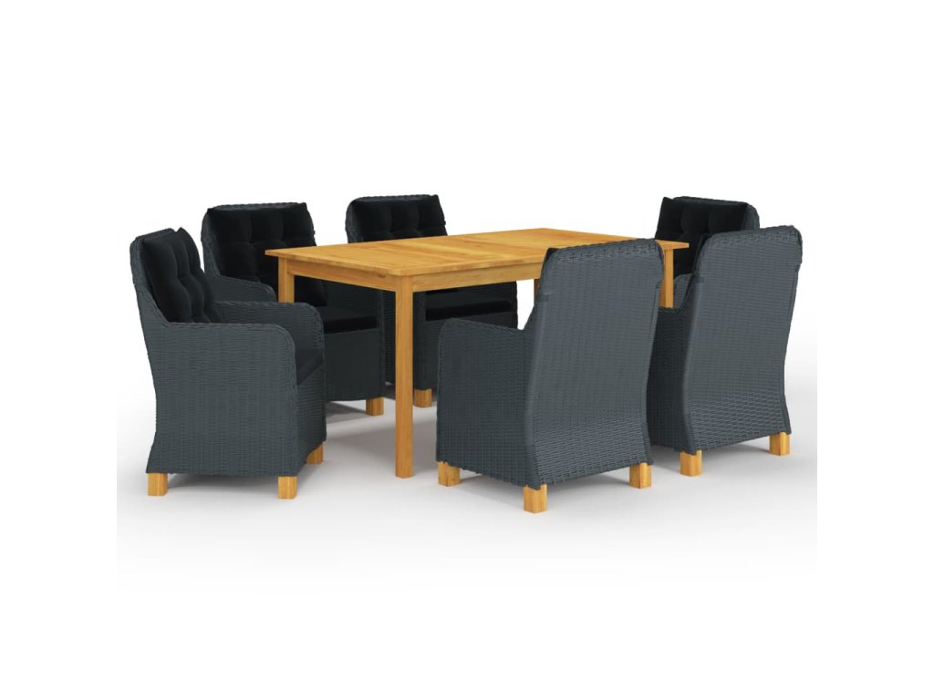 Jedálenský stôl je vyrobený z masívneho akáciového dreva s olejovou úpravou, vďaka čomu je stabilný, odolný a ľahko sa udržiava. Vonkajšie stoličky s oceľovým rámom s práškovým povrchom sú pokryté okrúhlym PE ratanom, a sú robustné a ľahko sa čistia. Husto polstrované vankúše zabezpečia ešte väčšie pohodlie počas oddychu. Poťah na vankúš je vybavený zipsom, dá sa jednoducho zvliecť a oprať. Nohy s masívneho akáciového dreva sa vyznačujú pevnosťou a stabilitou. Záhradné stoličky môžete jednoducho presúvať vďaka ich ľahkej konštrukcii.