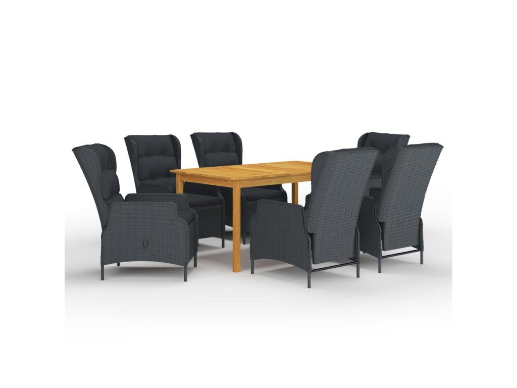 Jedálenský stôl je vyrobený z masívneho akáciového dreva s olejovou povrchovou úpravou, vďaka čomu je stabilný, odolný a ľahko sa udržiava. Vonkajšia stolička s oceľovým rámom s práškovým nástrekom pokrytá okrúhlym PE ratanom je pevná a ľahko sa čistí. Podložky s hustou výplňou vám poskytnú dokonalé pohodlie počas oddychu. Poťah na zips sa dá zvliecť a oprať. Operadlo sa dá podľa potreby polohovať vďaka mechanizmu plynového piestu. Stačí stlačiť tlačidlo na boku a operadlo sa sklopí, aby sa vám ležalo čo najpohodlnejšie. Záhradné kreslo má ľahkú konštrukciu, takže sa dá jednoducho presúvať.