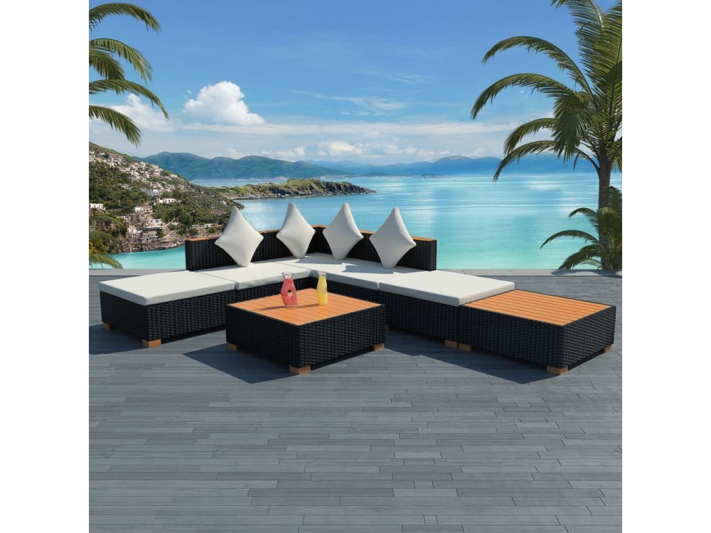 Odolná sedacia súprava sa ľahko čistí a je vyrobená z PE ratanu, ktorý je odolný voči poveternostným vplyvom, a preto je vhodná na každodenné používanie v exteriéri. Jednotlivé sekcie pohovky majú pevný a trvácny oceľový rám s práškovou povrchovou úpravou. Odnímateľné podložky na sedadlo a vankúše sú veľmi pohodlné. Polyesterové poťahy si nevyžadujú náročnú údržbu a dajú sa zvliecť a oprať. Doska stola a vrchná čas opierok na ruky sú vyrobené z trvácneho WPC hnedej farby. Ratanová súprava pohoviek pozostáva z oddelených modulov a preto sa dá jednoducho premiestňovať a prispôsobiť okolitému prostrediu.