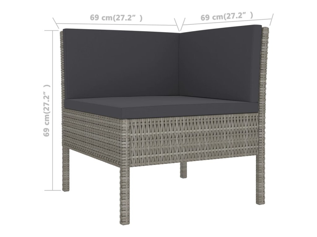 - Rozmery rohovej pohovky: 69 x 69 x 69 cm (Š x H x V)
