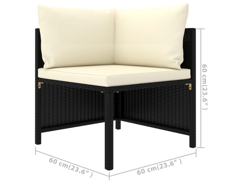 Pohodlná záhradná súprava pozostáva z oceľového rámu s práškovou povrchovou úpravou, ktorý je pokrytý PE ratanom, vďaka čomu je pevná a dá sa ľahko očistiť. Podložky s hustou výplňou vám poskytnú maximálne pohodlie pri sedení. Poťahy podložiek so zipsami sa dajú zvliecť a oprať. Podnožku môžete využívať aj ako praktický konferenčný stolík, na ktorý si odložíte rôzne predmety. Vonkajšia sedacia súprava má ľahkú konštrukciu, a tak sa dá jednoducho premiestňovať. Vďaka modulárnemu dizajnu si môžete súpravu ľubovoľne rozložiť do rôznych tvarov.