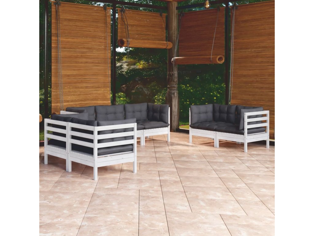 Terasová sedacia súprava je vyrobená z masívneho borovicového dreva, vďaka čomu je robustná a stabilná. Vankúše jej dodávajú dodatočné pohodlie. Môžete ju skombinovať s inými modulárnymi segmentmi a vytvoriť si tak svoje vlastné konfigurácie záhradného posedenia!