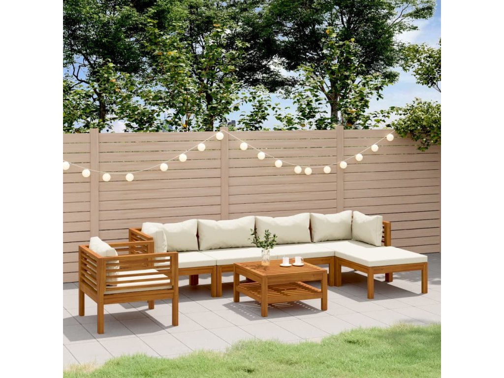 Sedacia súprava s rámom z akáciového masívu je pevná, robustná a trvácna. Súprava pohoviek je ošetrená olejovým náterom, vďaka čomu je vhodná do exteriéru. Odnímateľné podložky s hustou výplňou poskytujú maximálne pohodlie. Súčasťou súpravy je aj konferenčný stolík s jedinečným latkovým dizajnom. Vďaka praktickej modulárnej konštrukcii sa jednotlivé diely dajú ľubovoľne usporiadať a prispôsobiť okolitému prostrediu.