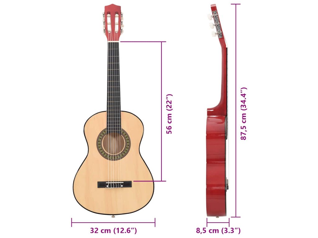 Naša klasická gitara je skvelý nástroj pre deti, začiatočníkov a amatérov. V balení je okrem gitary aj taška na gitaru, popruh, trsátka, držiak na trsátka, ladiaca píšťalka a sada gitarových strún.