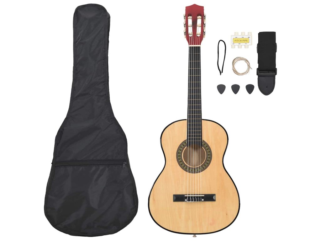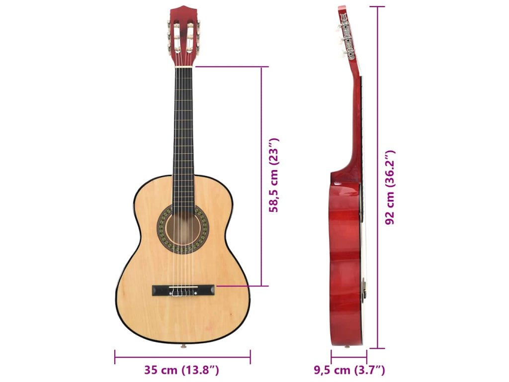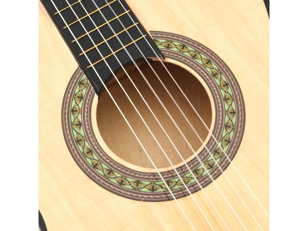 Naša klasická gitara je skvelým nástrojom pre začiatočníkov a amatérov. Okrem gitary sa v balení nachádza aj taška na gitaru, popruh, brnkadlá, ladiaca píšťalka a sada gitarových strún.