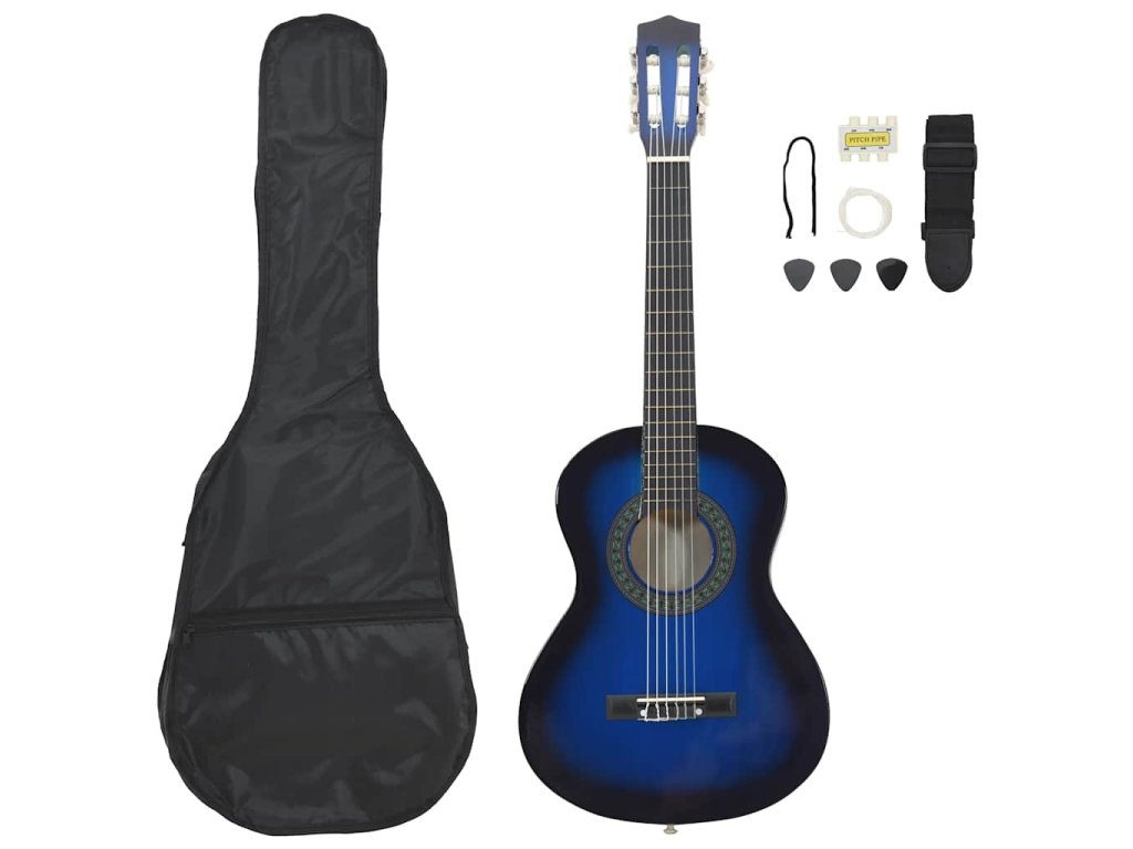 Naša klasická gitara je skvelým nástrojom pre začiatočníkov a amatérov. Okrem gitary sa v balení nachádza aj taška na gitaru, popruh, brnkadlá, ladiaca píšťalka a sada gitarových strún.