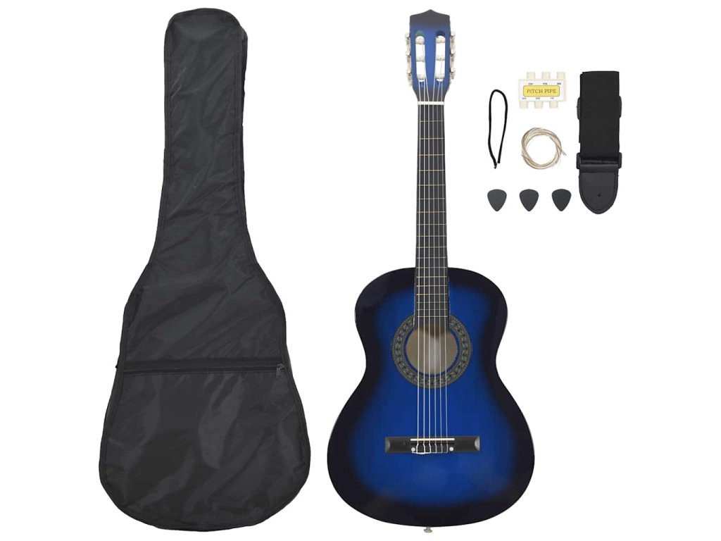 Naša klasická gitara je skvelým nástrojom pre začiatočníkov a amatérov. Okrem gitary sa v balení nachádza aj taška na gitaru, popruh, brnkadlá, ladiaca píšťalka a sada gitarových strún.