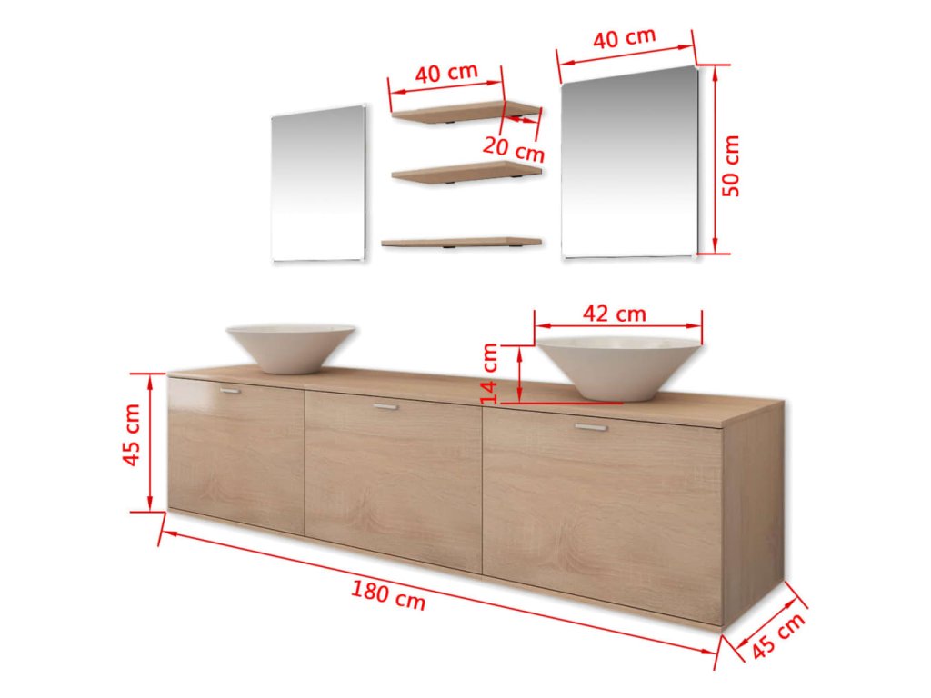 - Rozmery skrinky pod umývadlo: 180 x 45 x 45 cm (D x Š x V)