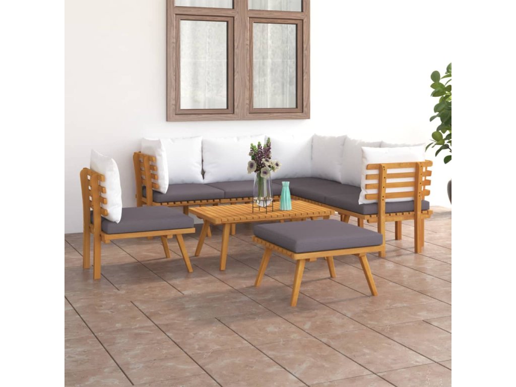 Súprava vonkajšieho nábytku je vyrobená z masívneho akáciového dreva a je odolná voči poveternostným vplyvom a má vysokú životnosť. V kombinácii s hrubo čalúnenými vankúšmi poskytuje táto sedacia súprava maximálne pohodlie. Môžete ju skombinovať s inými modulárnymi segmentmi a vytvoriť si tak svoje vlastné osobné záhradné sedacie súpravy!