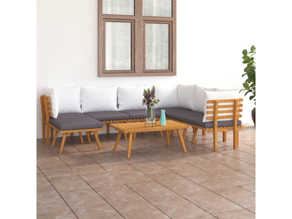 Súprava vonkajšieho nábytku je vyrobená z masívneho akáciového dreva a je odolná voči poveternostným vplyvom a má vysokú životnosť. V kombinácii s hrubo čalúnenými vankúšmi poskytuje táto sedacia súprava maximálne pohodlie. Môžete ju skombinovať s inými modulárnymi segmentmi a vytvoriť si tak svoje vlastné osobné záhradné sedacie súpravy!