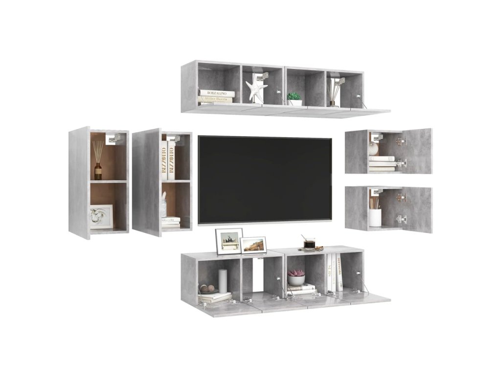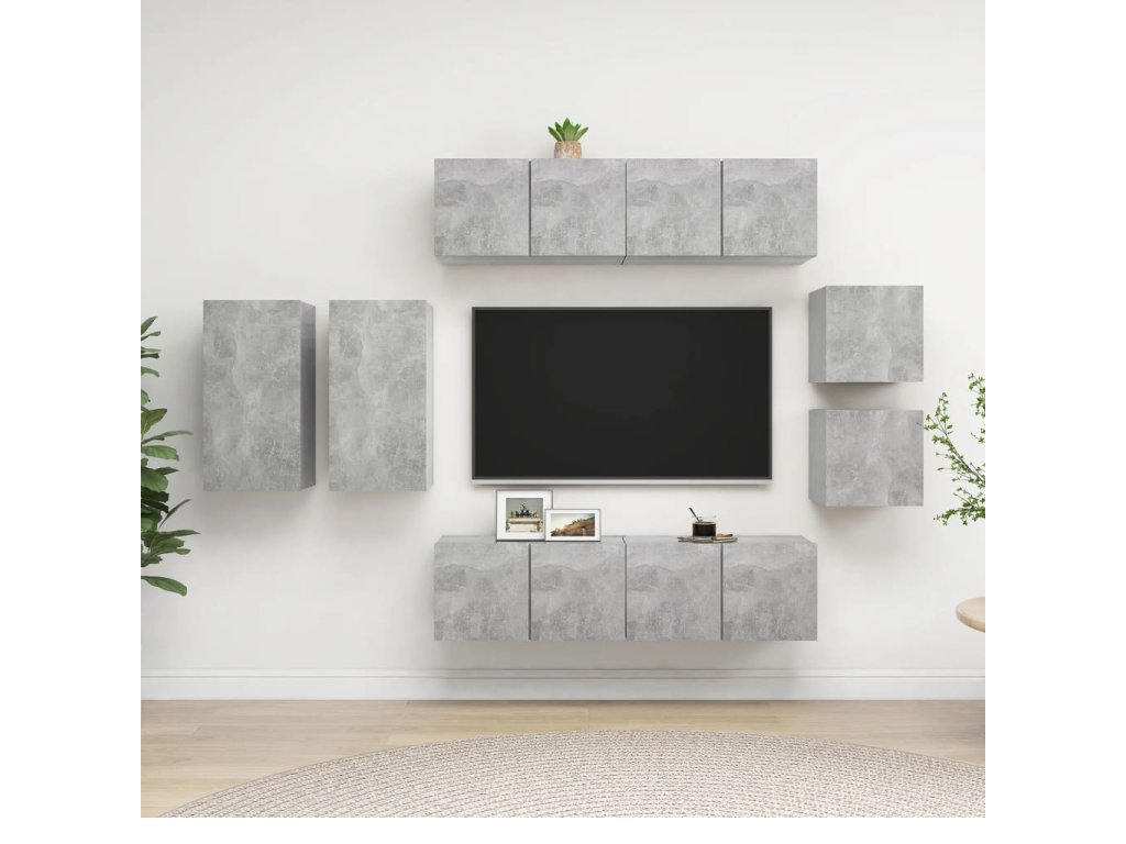 Táto sada závesných TV skriniek je vybavená veľkým úložným priestorom na uloženie rôznych predmetov a vo vašej domácnosti vytvorí praktický a pútavý doplnok.