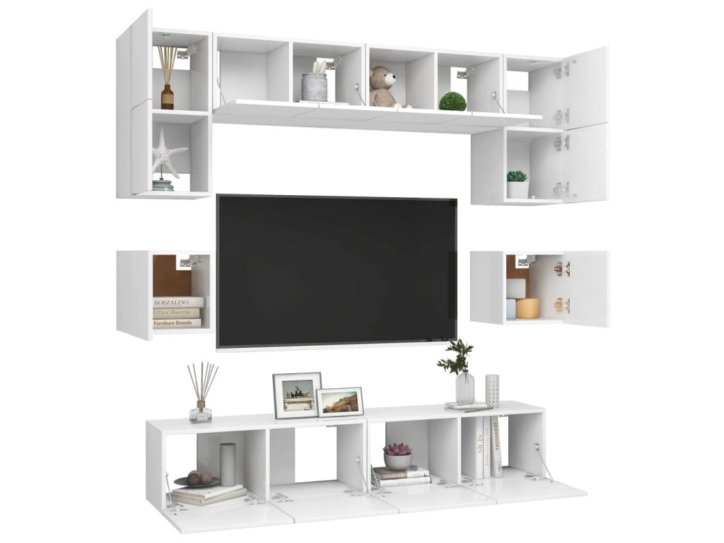 Táto sada závesných TV skriniek je vybavená veľkým úložným priestorom na uloženie rôznych predmetov a vo vašej domácnosti vytvorí praktický a pútavý doplnok.