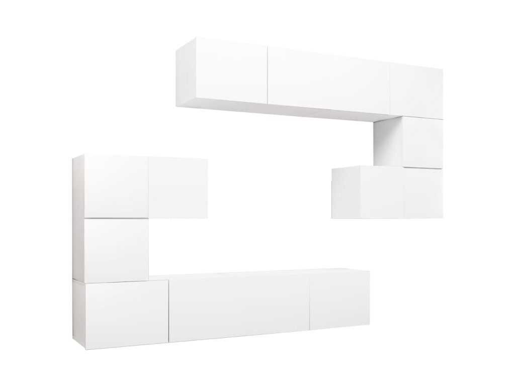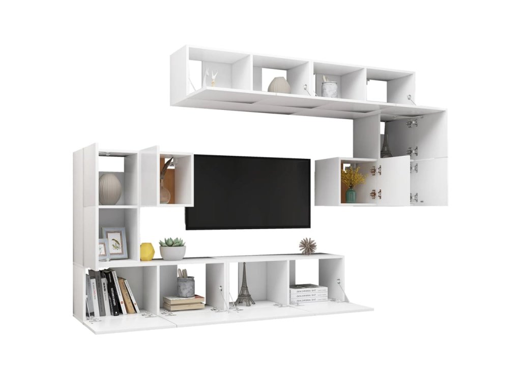 Táto sada závesných TV skriniek je vyrobená z upraveného dreva, vďaka čomu je pevná a odolná. Zostava skrinky je pripevnená na stenu, vďaka čomu bude nadčasovým doplnkom vášho domova. Súprava obsahuje niekoľko priehradiek, vďaka ktorým je ideálnym miestom na uloženie všetkých vašich časopisov, DVD alebo iných predmetov. Táto HiFi skrinka sa dá ľahko očistiť navlhčenou handričkou.