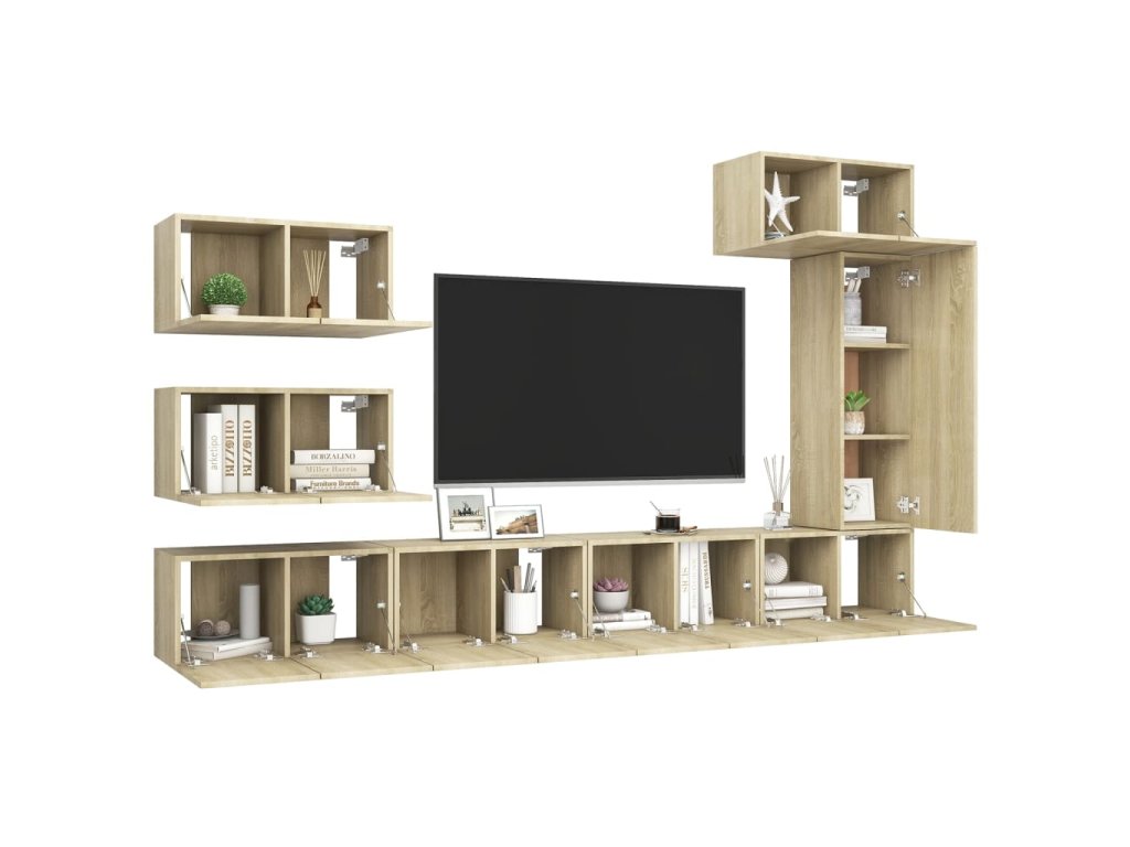 Táto sada závesných TV skriniek je vyrobená z upraveného dreva, vďaka čomu je pevná a odolná. Zostava skrinky je pripevnená na stenu, vďaka čomu bude nadčasovým doplnkom vášho domova. Súprava obsahuje niekoľko priehradiek, vďaka ktorým je ideálnym miestom na uloženie všetkých vašich časopisov, DVD alebo iných predmetov. Táto HiFi skrinka sa dá ľahko očistiť navlhčenou handričkou.