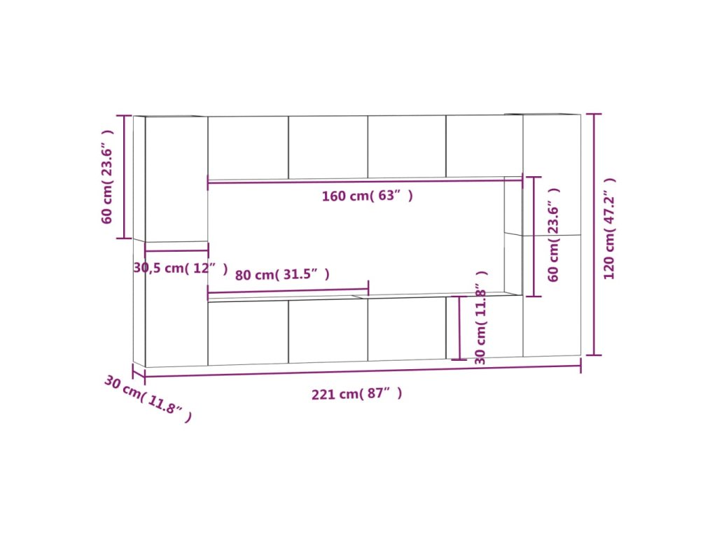 - 4 x TV skrinka: 30,5 x 30 x 60 cm (Š x H x V)